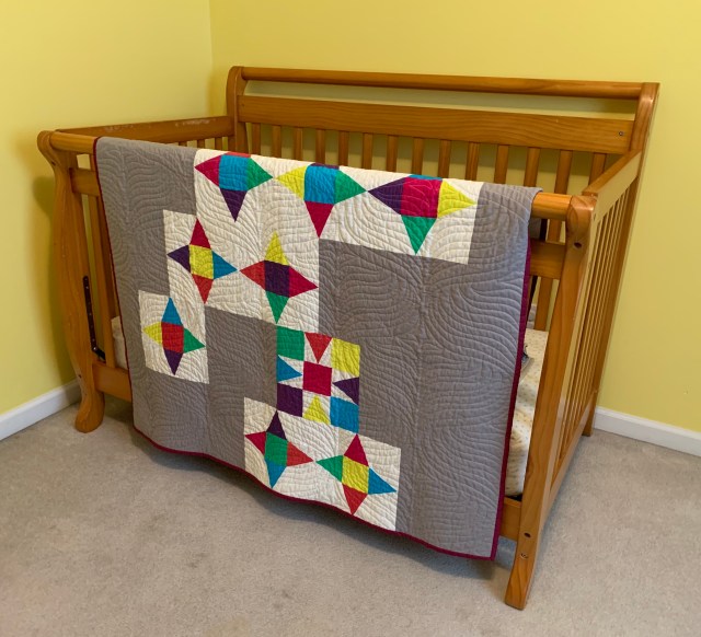 It looks wonderful! I also love the backing and quilting. It will make one lucky baby very happy. Hugs,