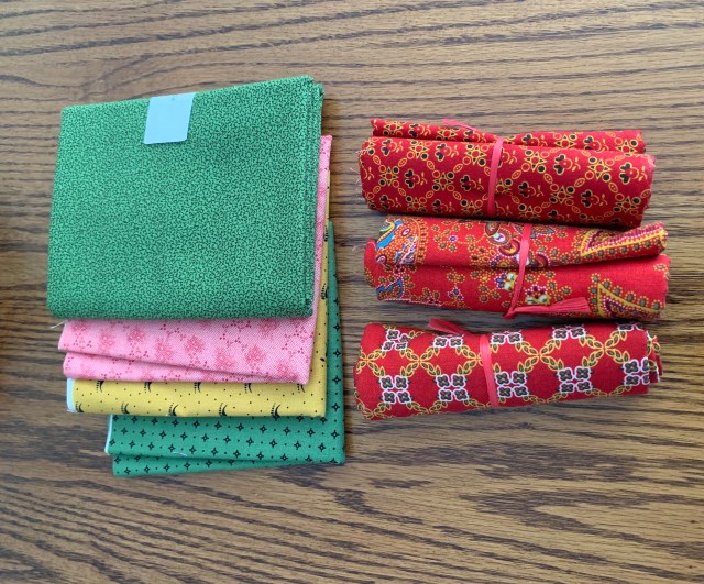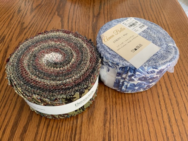 I mentioned that we were traveling last week. You know I always bring home treasure! These two beautiful jelly rolls were a gift from my sweet MIL. I already have an idea for the blue one.
