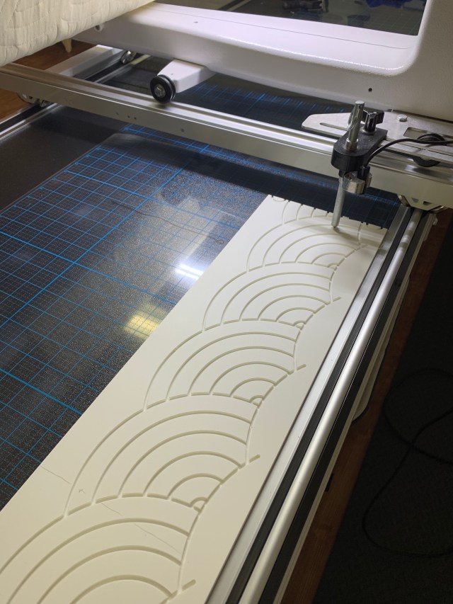 Pattern boards and the stylus setup are all available from Urban Elementz. Here is a little time saving tip for you. Whenever I’m making binding and have a half yard or less of fabric leftover, I go a head and cut it all up and make it into binding. Then I have extra on hand for quilts like this.