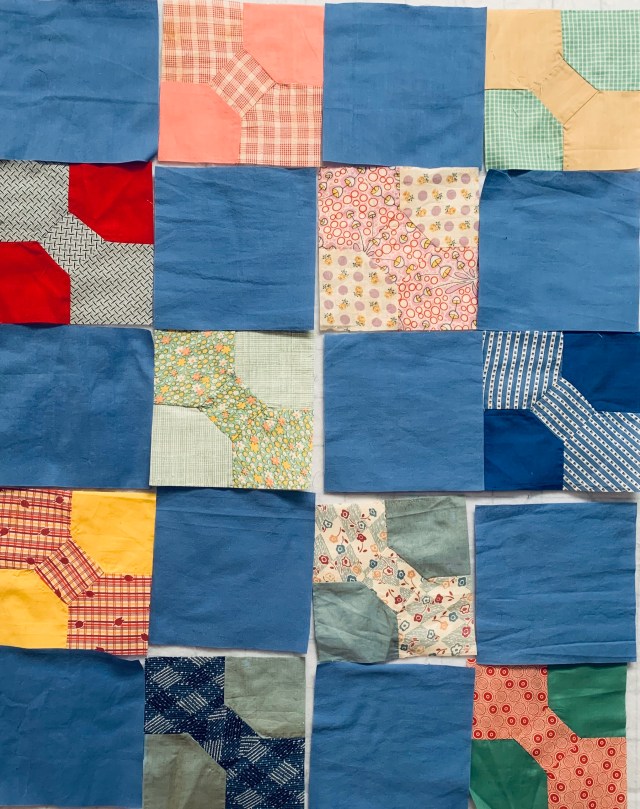 Choosing blue for the alternate squares gives a nod to the original Quilter who pieced the blocks with the poly cotton blue background. Great idea!