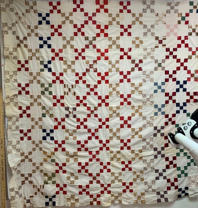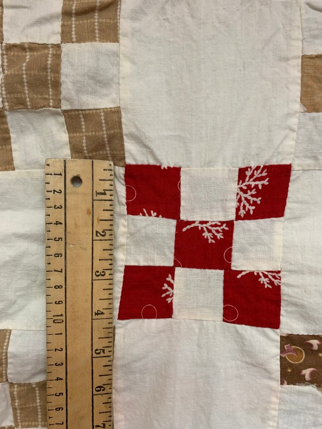 It actually has quite a few frayed seams that need to be fixed. It was handpieced and it appears to have been washed. This is never a good thing deal with a vintage top as the seams often fray beyond repair.