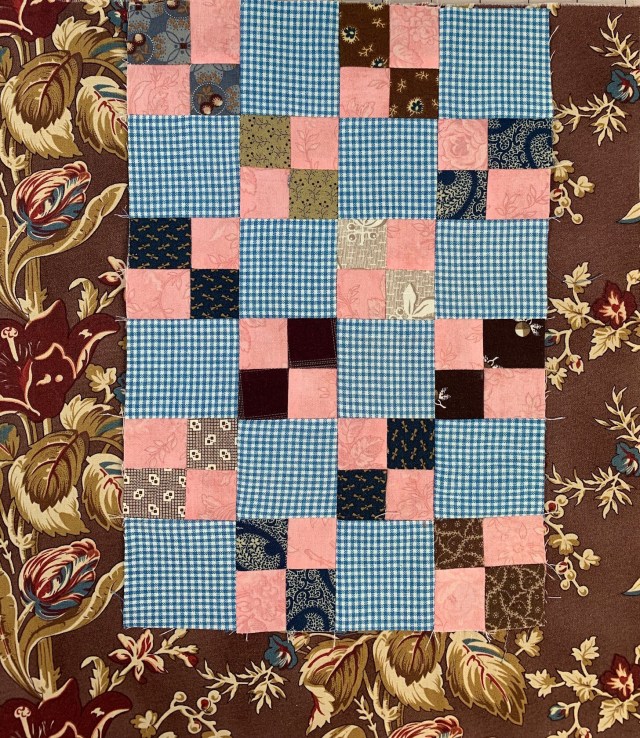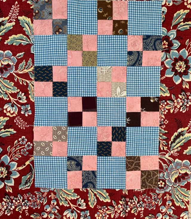 The scale of all three border prints is rather large for the small quilt of small prints. But that was the style of yesteryear, wasn’t it? I like the red border best, #2.