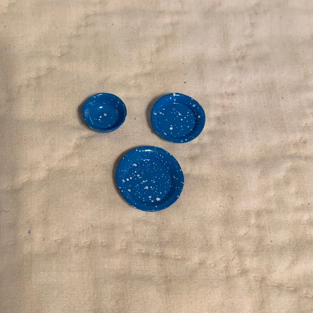 There are four of these enamel ware place settings so kindly gifted to me by blog reader, Susan.