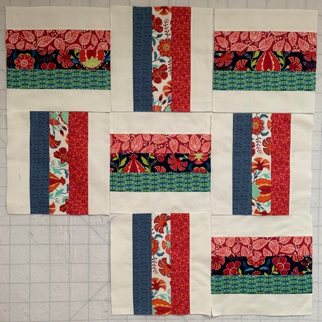 I had to try a few things on the design wall, but won’t get serious about a layout until all my blocks are done.