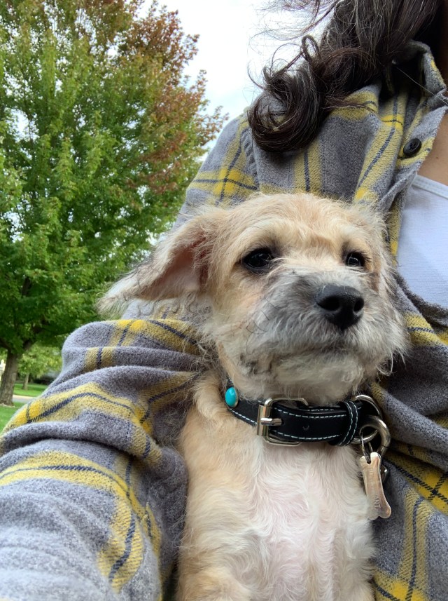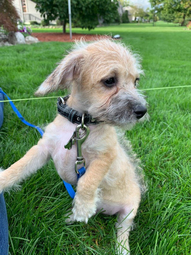 Welcome to and congratulations on having adopted Willy. He’s an adorable pup. I have a soft spot for scruffy looking little dogs like that. He looks a lot like my terrier mix, Harry, though I’m sure Harry is a good bit bigger than Willy will ever become if you are correct about his breed.
