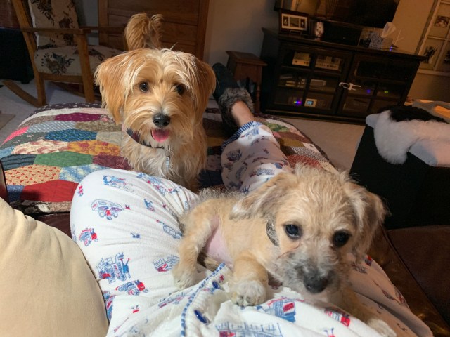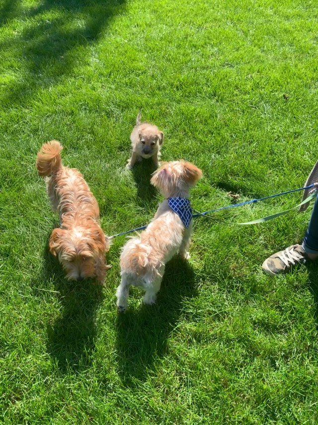 He is a 12 week old Yorkie/Bichon mix. So far Winslow and he are doing well.