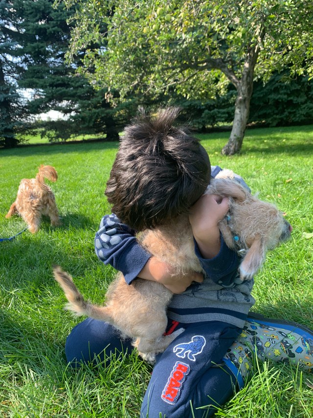 Little E could easily squeeze the puppy too tightly and accidentally hurt him, Willy is a very little and young puppy, and if he does the puppy will undoubtedly try to bite him. If that happens, I’m sure he’ll have no idea what he has “done wrong” and you and he might think the puppy bit him for no reason at all.