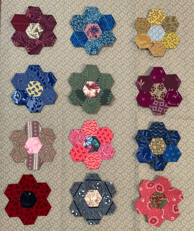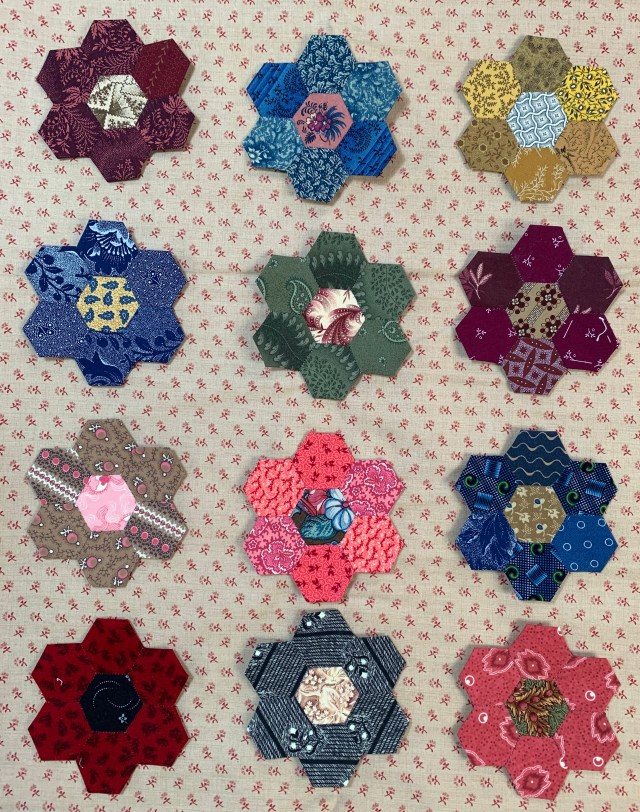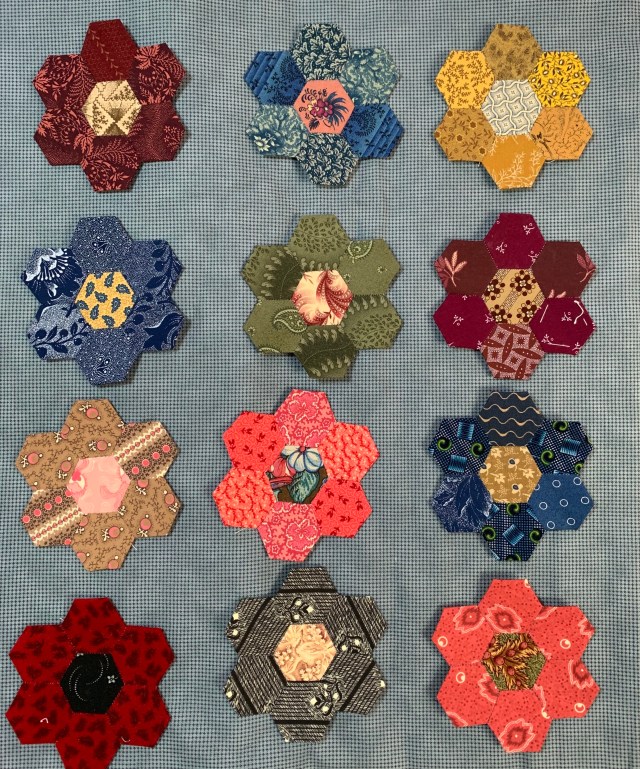 Hexies are my favorite! My great-grandmother taught me her only pattern (flower garden) when I was in high school, and it became my very first hand pieced queen-sized bed quilt!