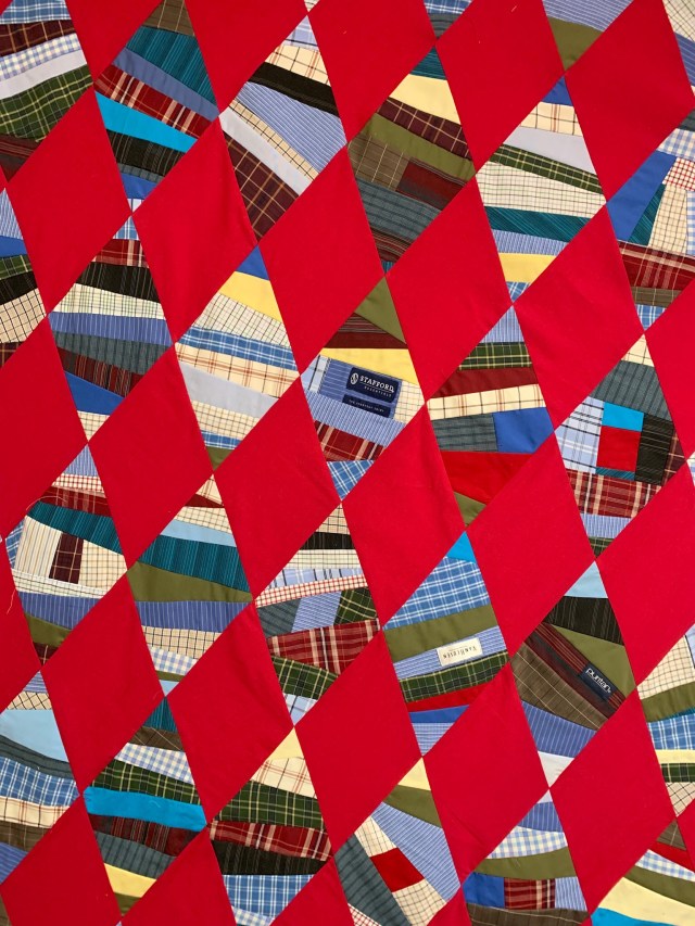 I have many points that don’t match well. Probably due in part to the thick string pieced blocks combined with a thin solid. I’d like to use this flannel for the back, but I’ll have to do some creative piecing if I am to make it stretch far enough.