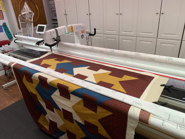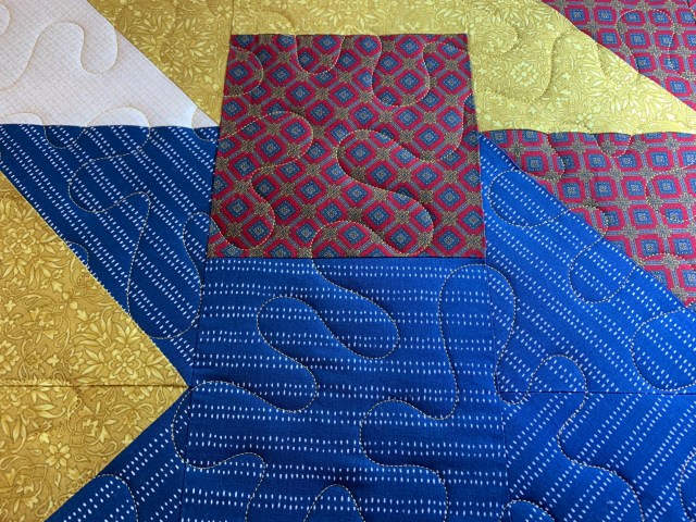 This is Zenia’s own pattern called, Straights and Arrows. So clever! I used Glide thread in Military Gold to quilt it.
