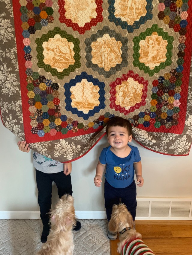 Your Christmas quilt turned out very well — what a great way to use all those red/green scraps! (And such cute grandboys.)