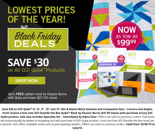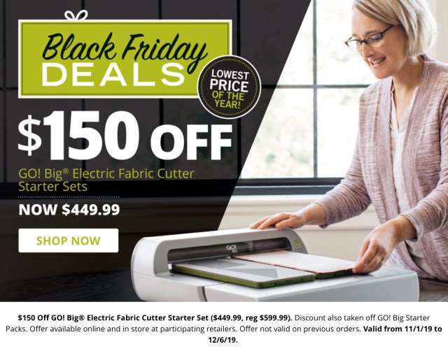 Accuquilt is extending several of their Black Friday Deals through December 6th and for today only, they are giving away die cutters!