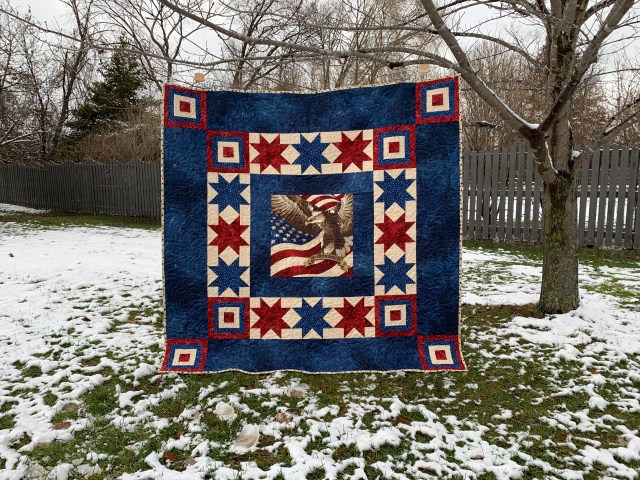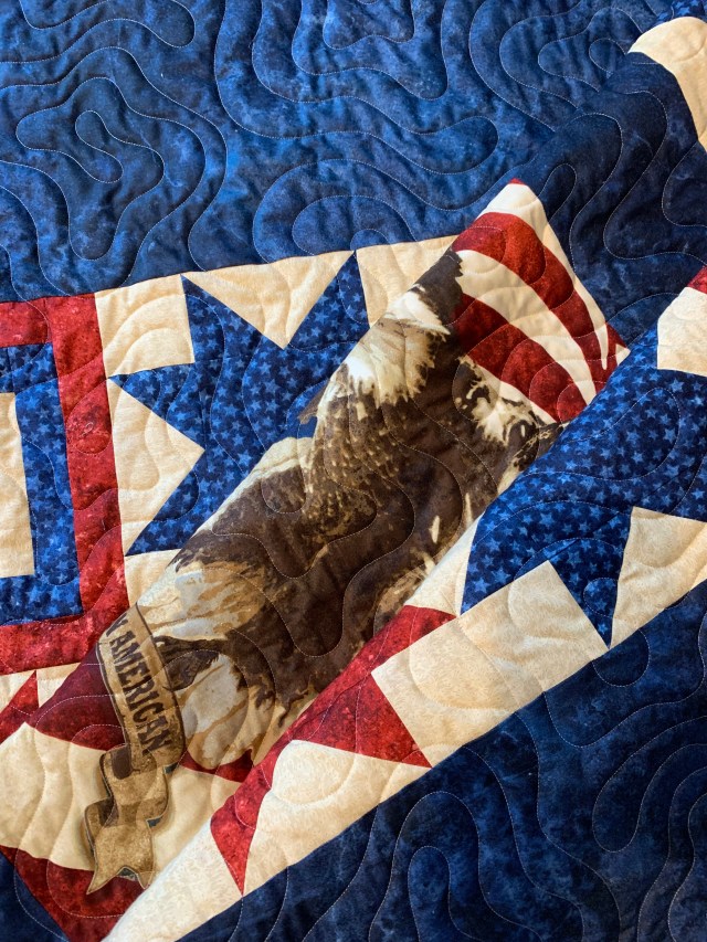 One lucky veteran!!! The recipient is going to treasure this forever! Great pattern, perfect fabrics, and love that panto!