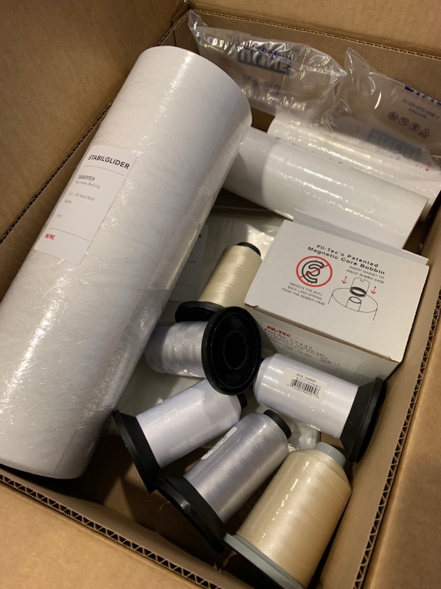 And this is my order from Hab and Dash. The thread is for Friday, my longarm. The rest is stabilizer for machine embroidery.