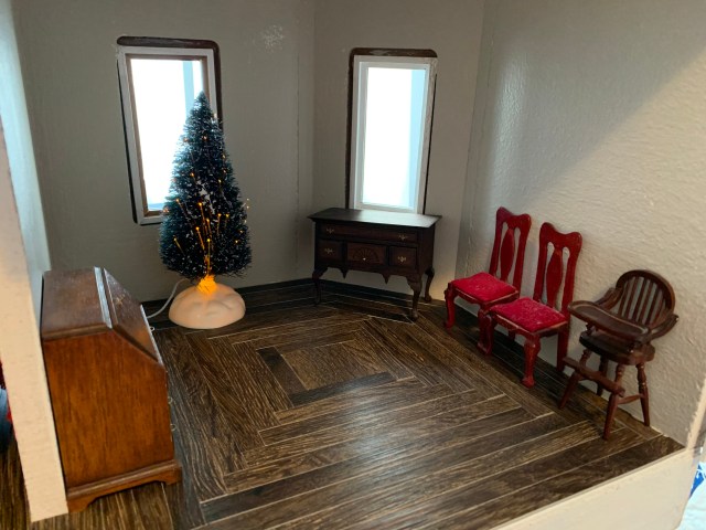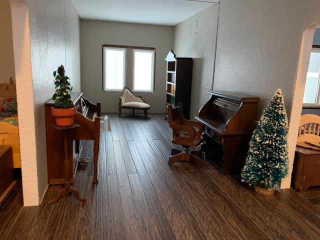 I was asked if I decorated my dollhouses for Christmas. I have to say that it would be so fun! But this year, I only had time for a few trees. This one has lights.