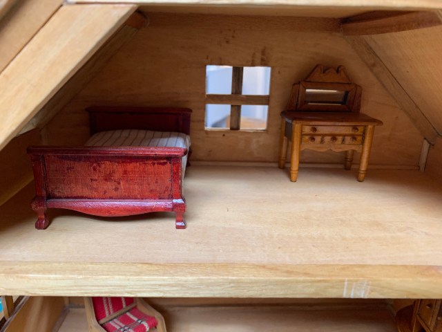 It is a smaller scale than my big house. I was very excited when I realized that some of the furniture that Shasta sent would fit this house perfectly!