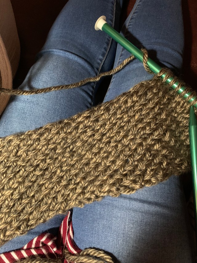 I thought I would baste a quilt for hand quilting over the holidays. Instead, I’ve been knitting. My attempts at knitting a hat were failures. So I moved on to scarves.