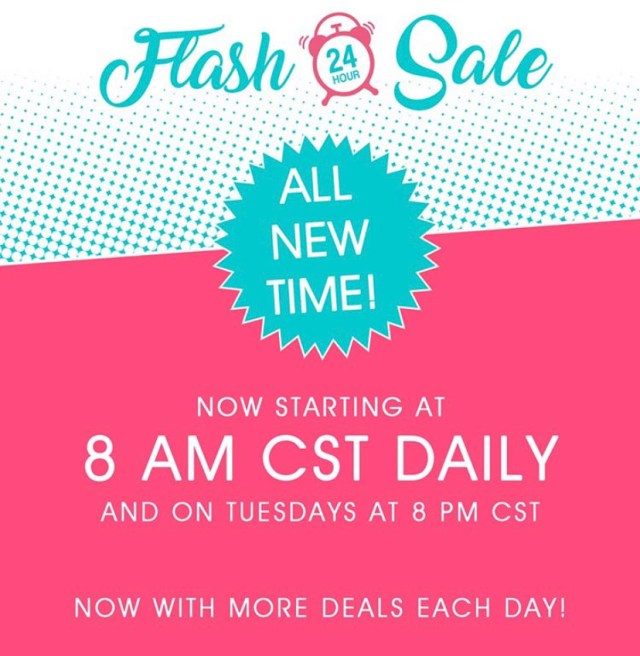 We have changed our daily Flash Sale time from 10 AM CST to 8 AM CST. Our Tuesday night Flash Sale time will also move up two hours to 8 PM CST. In addition to the time change, on some days we will put several items on sale