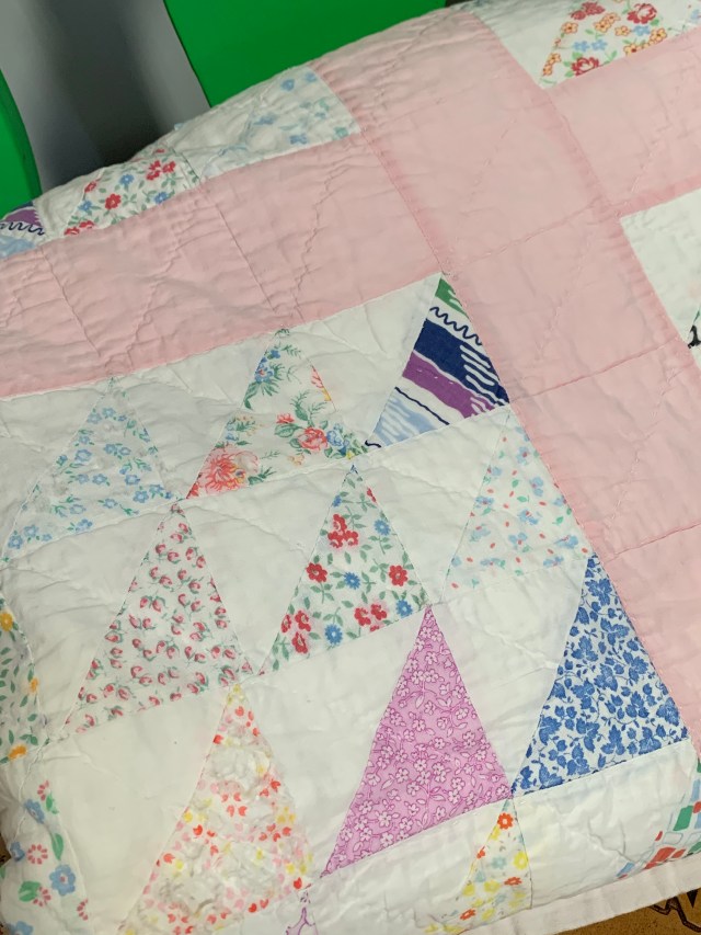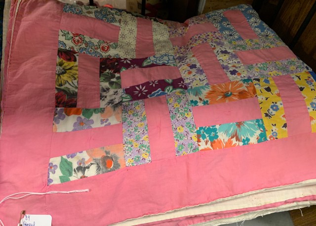 So many pretty quilts! I’d have been tempted with the third one, the one with the pink background, and the flying geese.