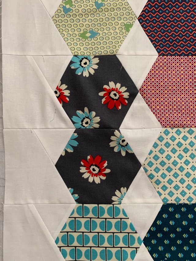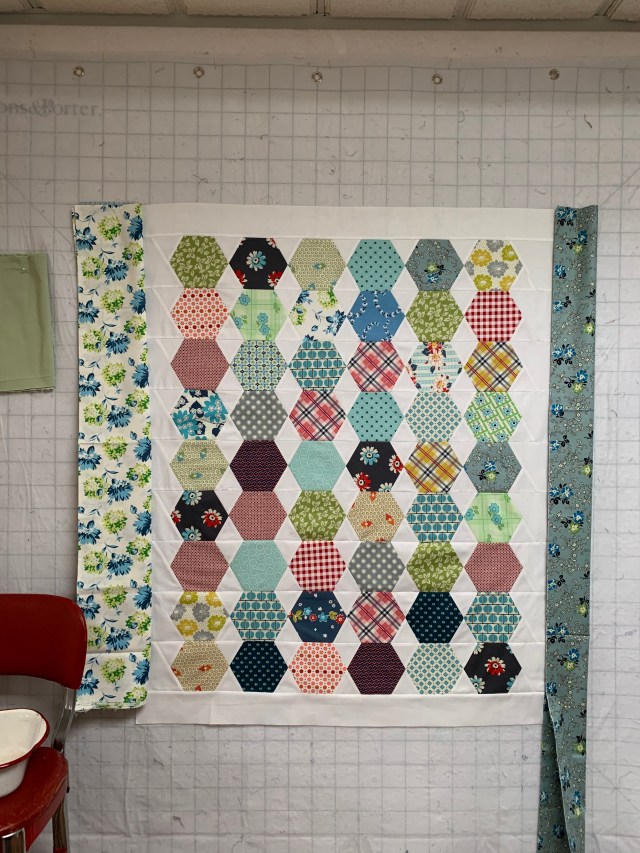 Progress has been made on this little quilt. I added pieces to the ends of each row to square things up.