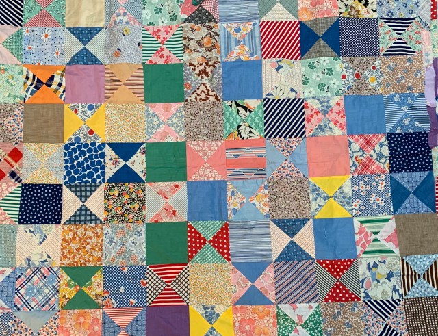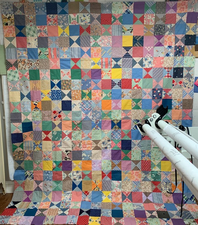 Remember when hubby and I went to antique shops on New Years? I passed on this quilt top. But since February is my birth month, I went back and got it for myself.
