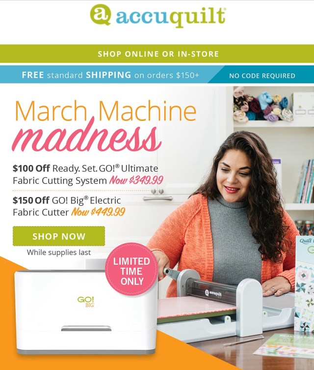 Also I wanted to let you know about some great deals on die cutters from Accuquilt .