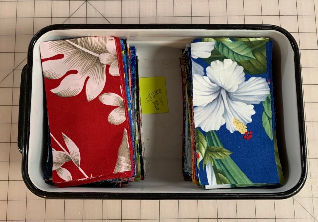 I bought a bunch of fabric when we visited Hawaii some years back. I made one quilt and then chopped up must of the rest into these rectangles.
