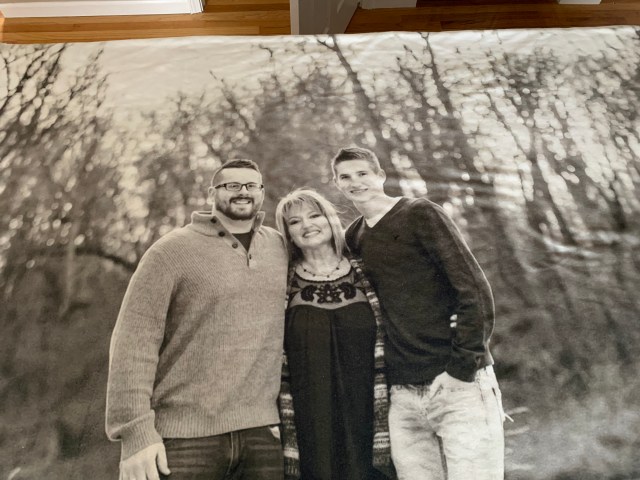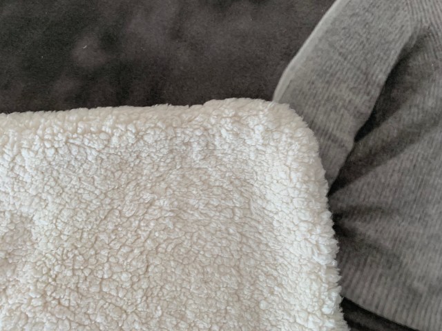 The hubby of another friend bought her a couple photo blankets for Christmas. I’m really impressed with the print quality. But they feel a bit like felt. I added some warm, fluffy stuff on the back for her.