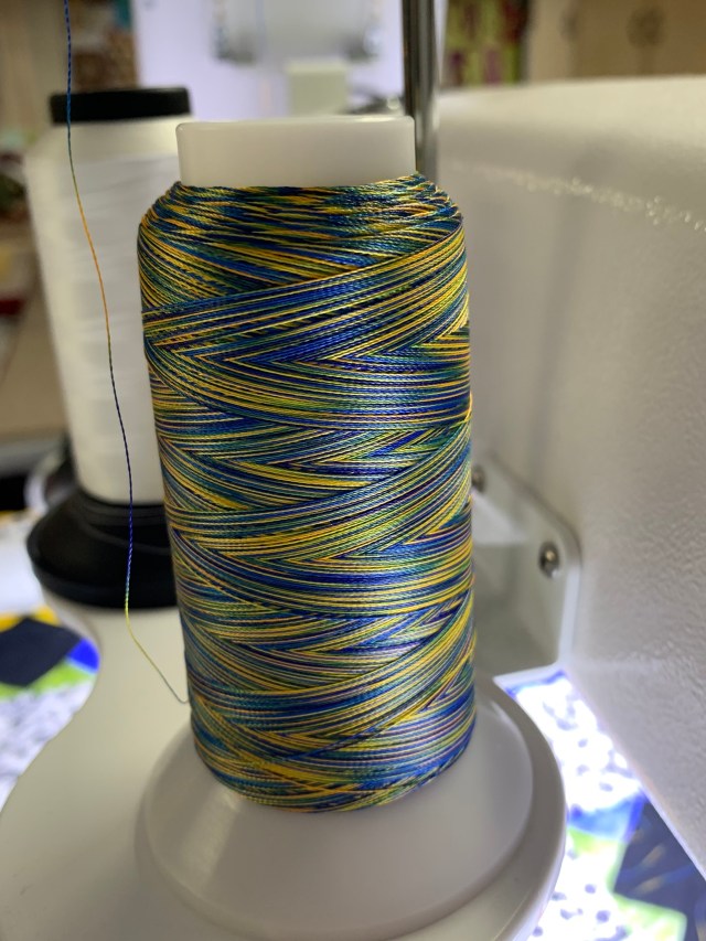 She asked for variegated thread, so I used this Rainbow from Superior Threads.