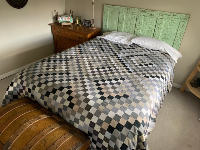 I have ordered fabric for backing and binding. I haven’t decided on batting yet. I’m bummed that this isn’t finished, but it is what it is. I’m very glad the monotonous piecing is behind me.