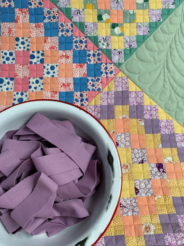 I’m so excited to be stitching this binding today! I’m nearing this finish line on this one.