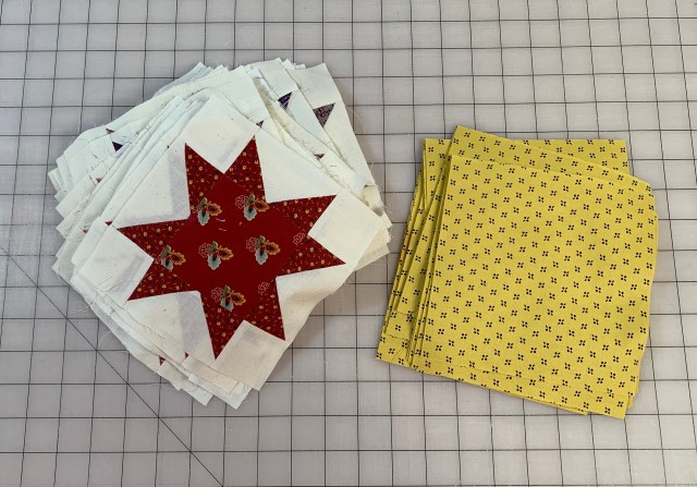 And then I remembered that I already had a pile of sawtooth star blocks from the last block swap organized by Barb. I went to the stash and found this perfect yellow!
