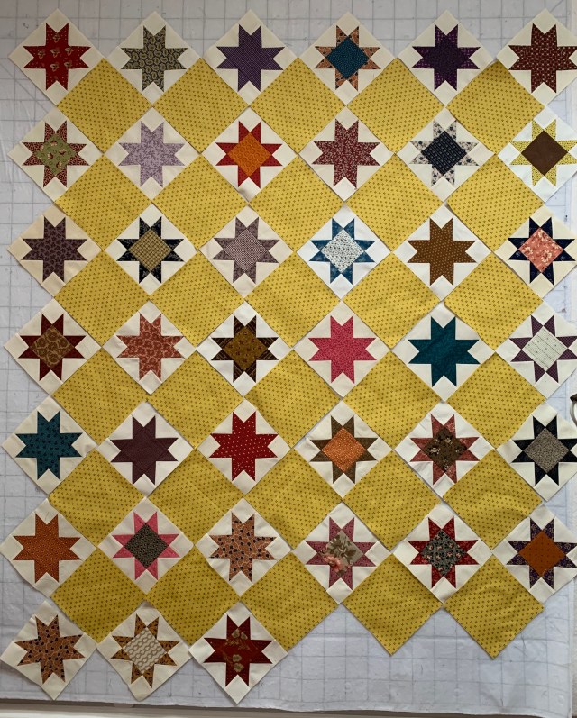 What a beautiful quilt in process…I love that yellow–a really pretty one–I think good yellows are hard to find (sung to the tune of “A Good man is hard to find, you always get the other kind”..hahaha) anyhoo–I do love how this is coming together