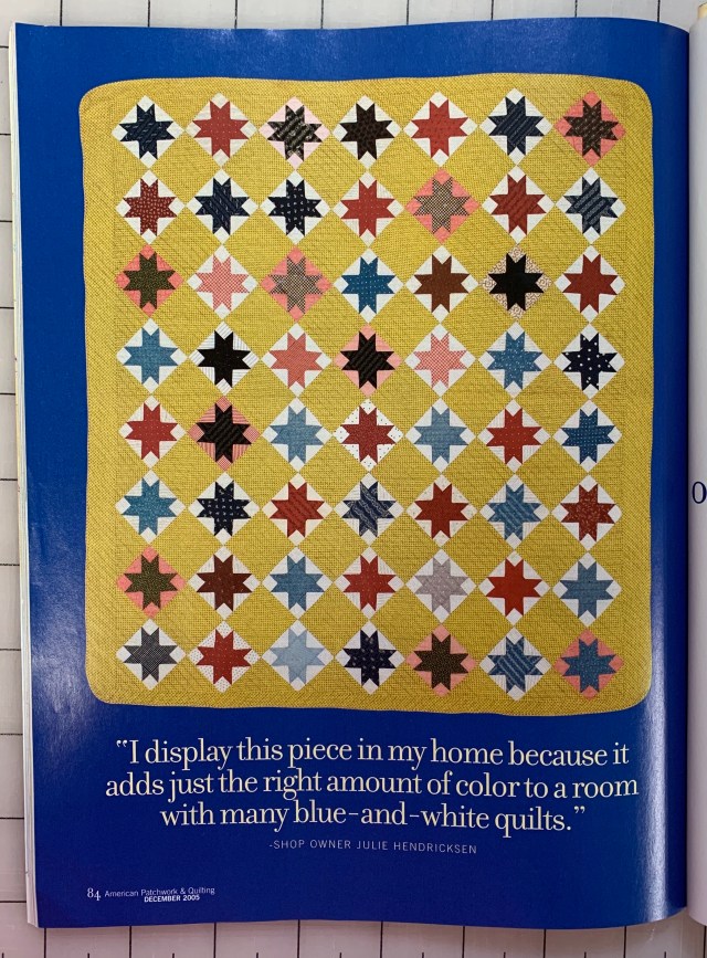 While perusing Instagram recently, I came across a post by Annette Plog . She had saved this magazine from 2005 and is starting to make this cover quilt.