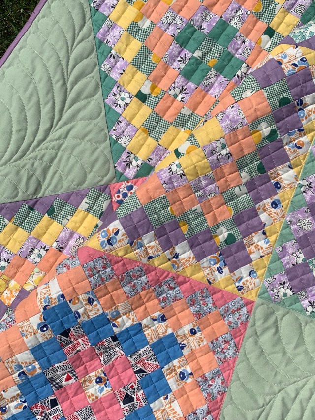 It turned out great. I really enjoy Seeing your finishes. You are getting a lot of mileage out of the green estate fabric. It goes so well with all of your vintage fabrics. Nice job.