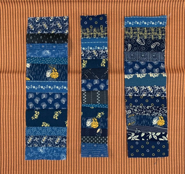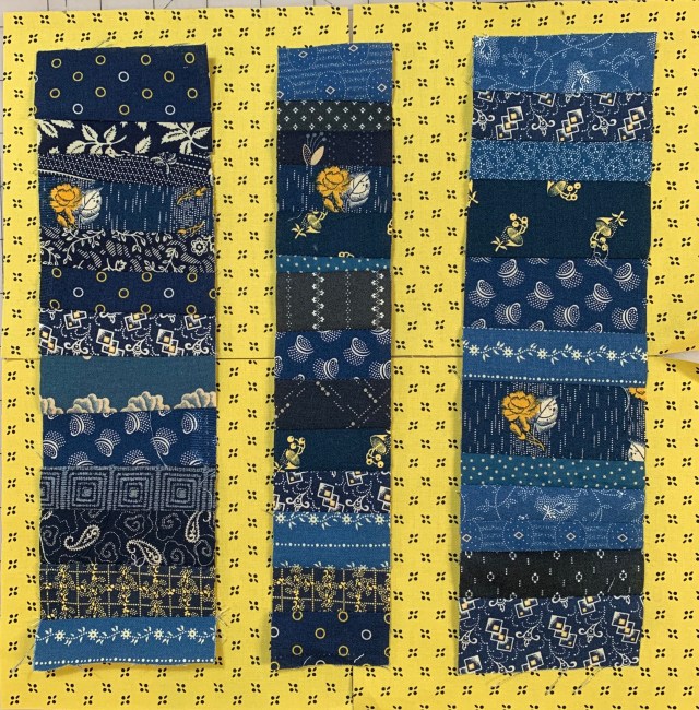 Love that cheddar background in the third photo. I’d love to find some yardage in just that shade, seems like it is almost always perfect with deep blues.