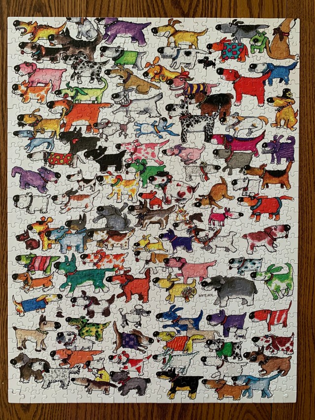 And I finished another puzzle. It’s called 100 Dogs and a Cat.