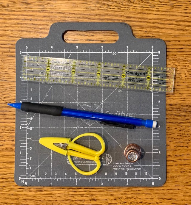 The back of that cutting mat has a piece of sandpaper glued on so I can mark seam allowances without the fabric shifting.