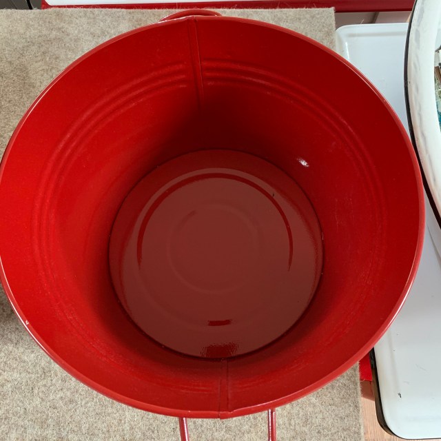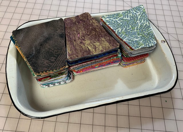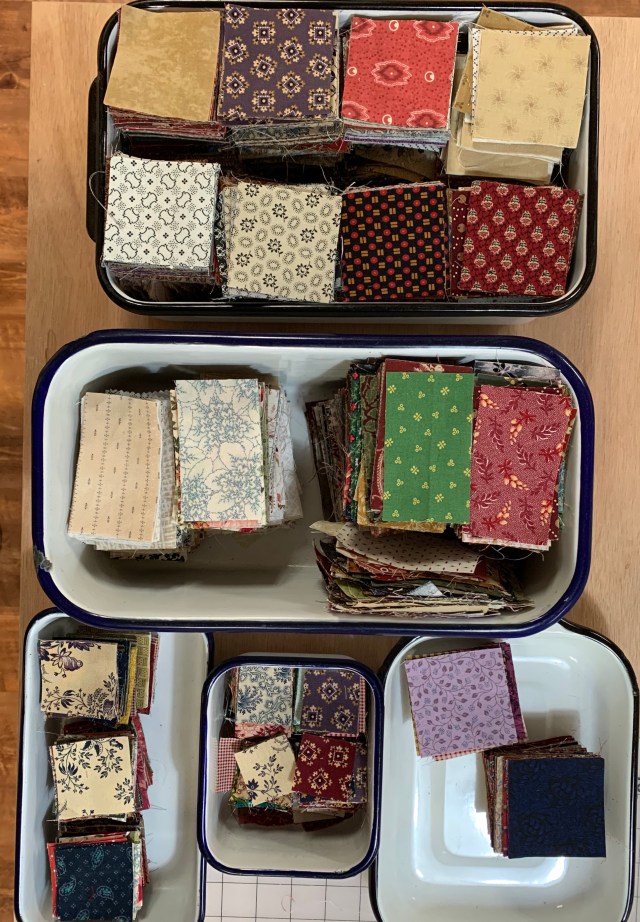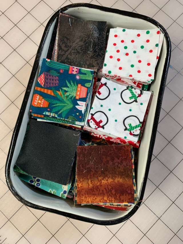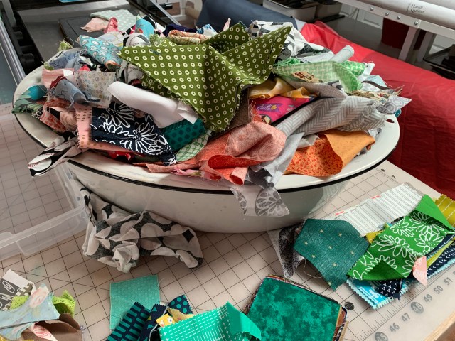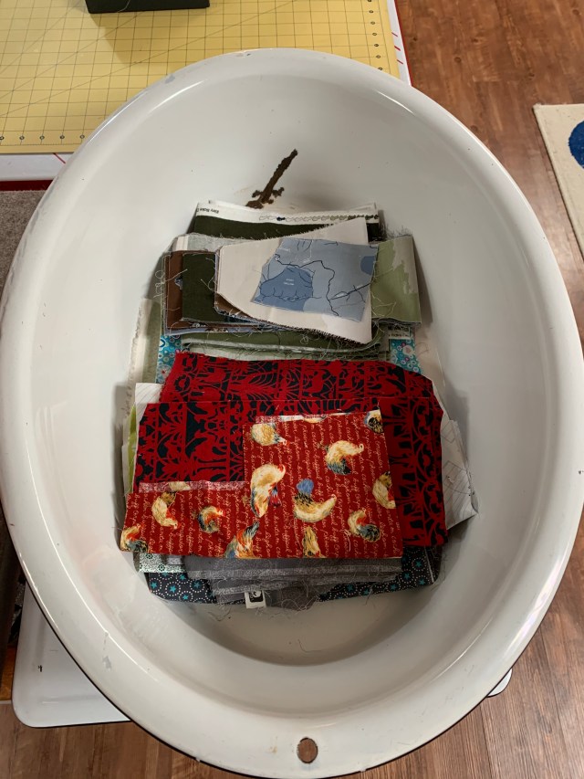 Good job on dealing with the scraps. I have bins and bins of scraps! I have an enamel baby bath too! Mine is yellow and my Dad was bathed in it.