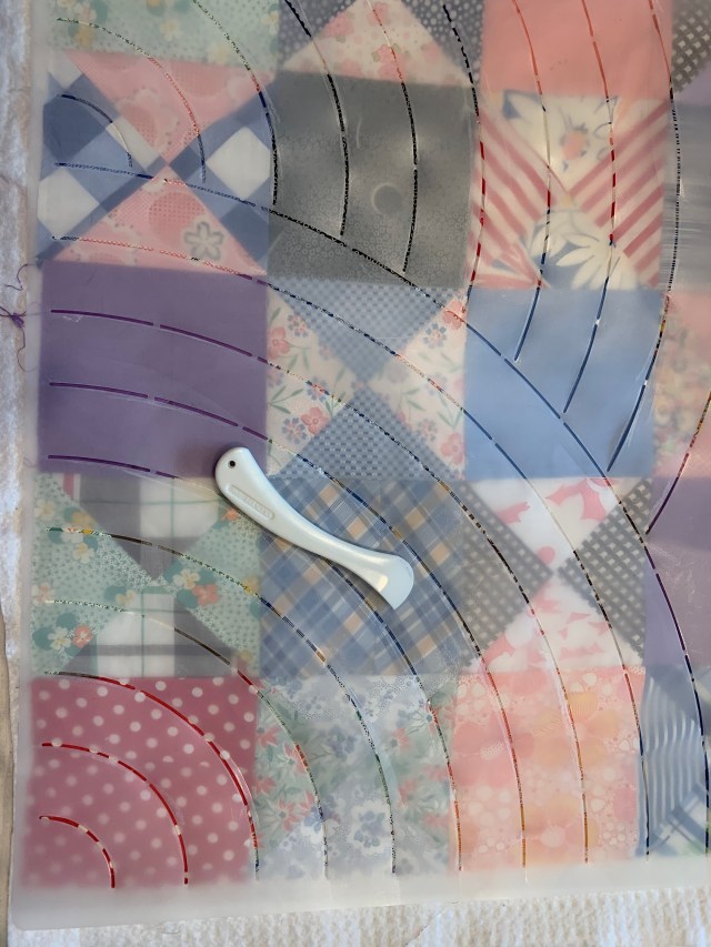 I’m using my Hera marker to mark the arcs. I love this thing! Hopefully, you can see the markings below. It is just a crease in the fabric.