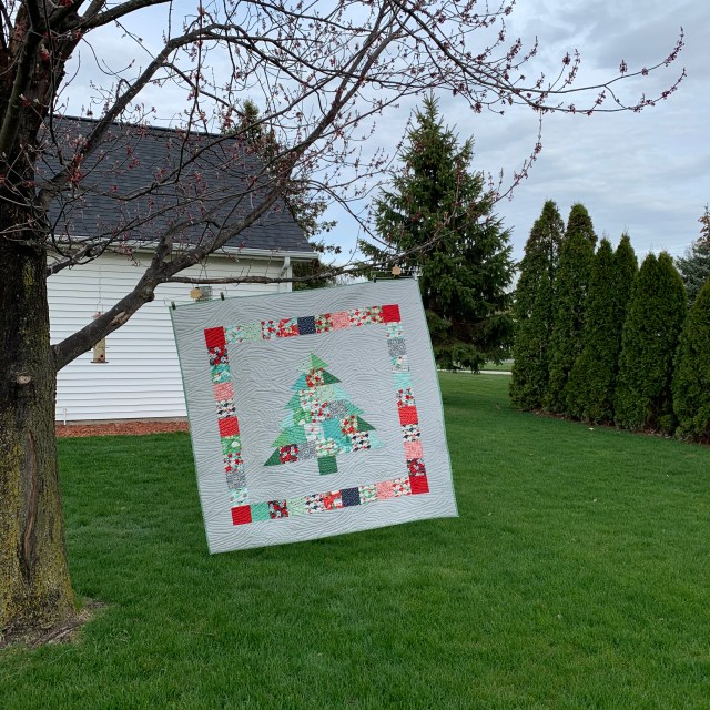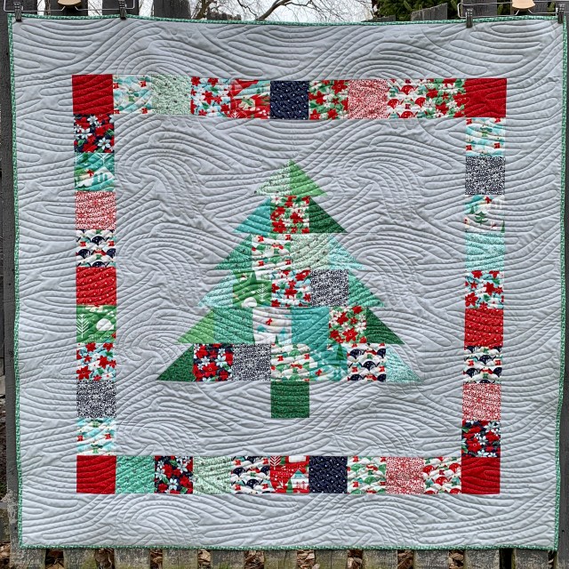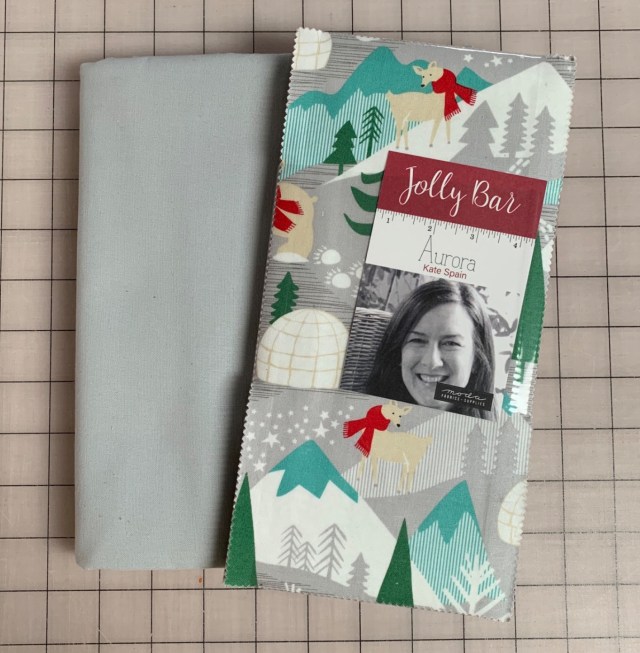 I used Kate Spain’s line of Christmas fabric called, Aurora, and a silver Bella solid. Both are available from the Fat Quarter Shop .