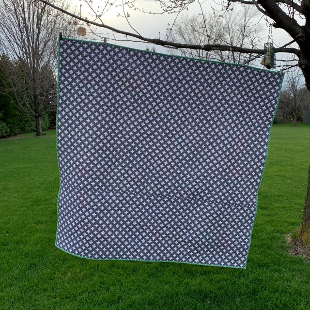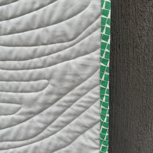 It’s so pretty!! I love the quilting design. It looks all swirly like a wind blowing. Just perfect. Hugs,