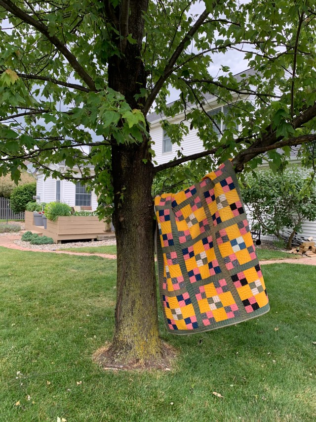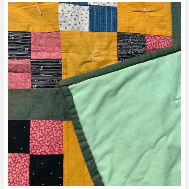 Here are a couple photos to remind you what this looked like when I purchased it as a tied quilt in early May.