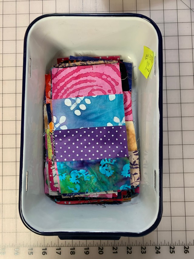 After traveling, I always seem to struggle to get back into the sewing groove. I looked at my UFO list and realized I STILL had batik strip blocks, so I decided it was time to use them up.