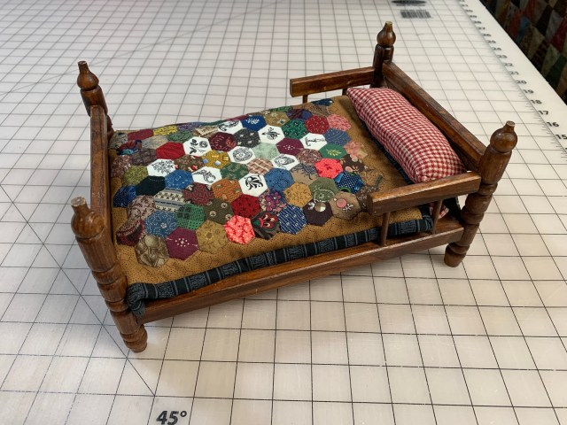 I adore that little doll bed with the quilt on it. You DO find the neatest things! I have a Boyd bear. It’s possible the bed and a little bear were sold as a set. Your dogs are as cute as can be and could well be on the cover of a calendar.