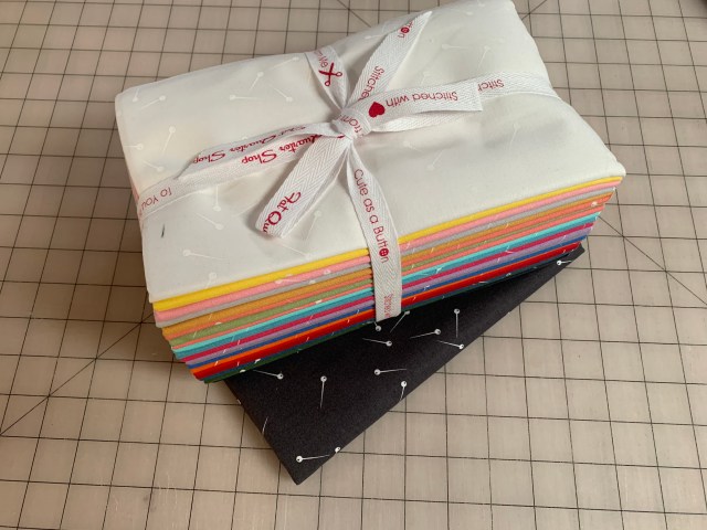 I received a fun package in the mail this weekend from Fat Quarter Shop . It was this half yard bundle of Pin Drop!