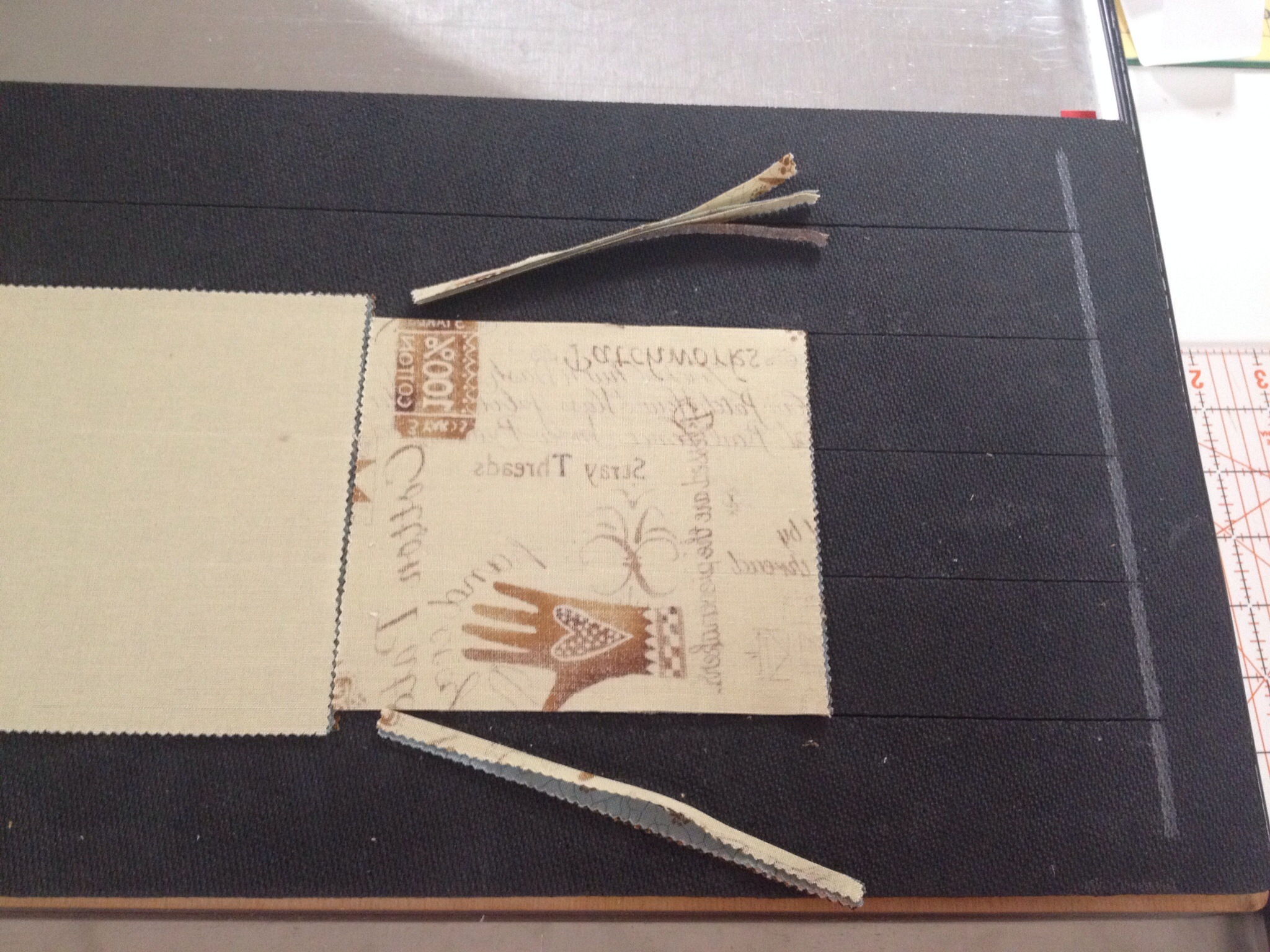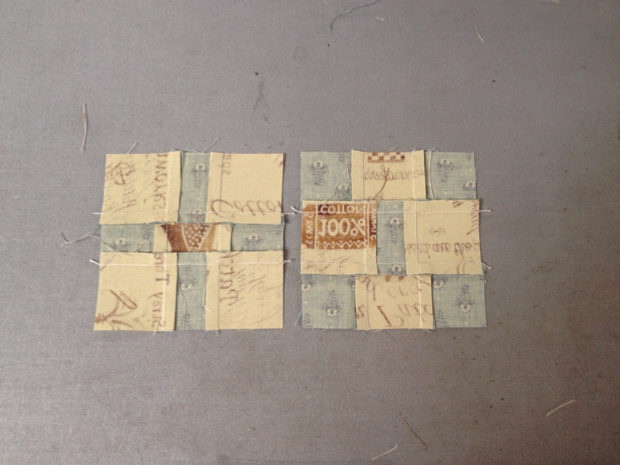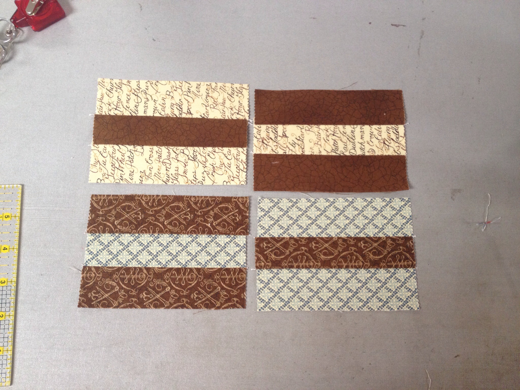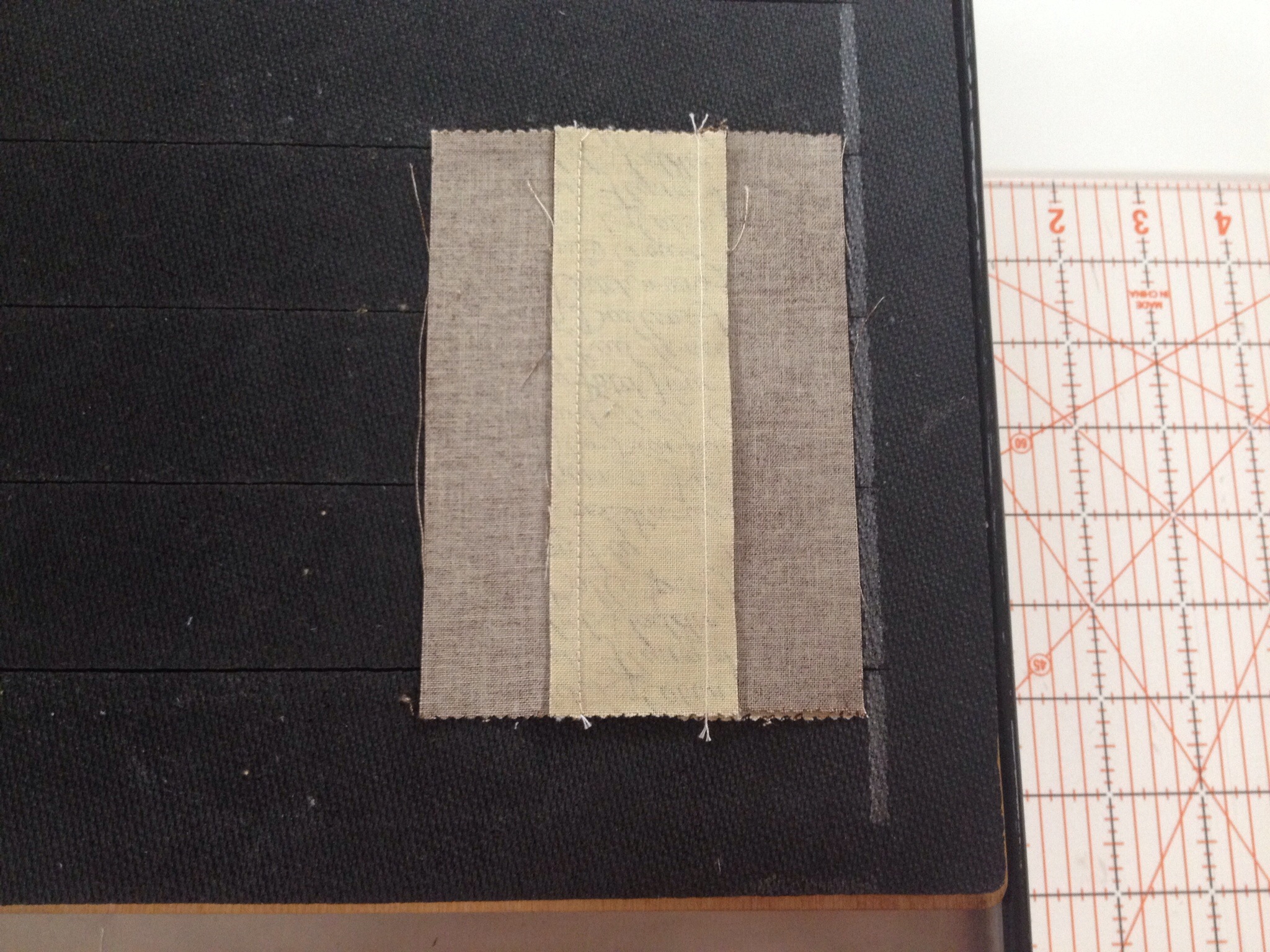 Next, I sewed the strips together, alternating light and dark in each pair.