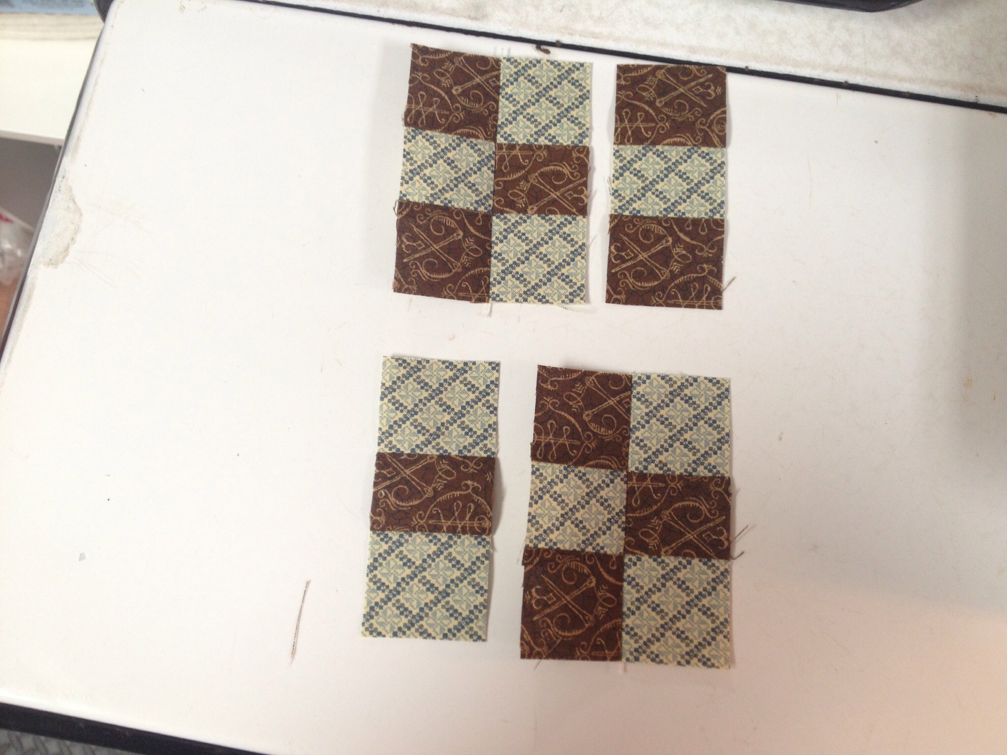 Time to sew the 9 patches together! The first seams are really quick because they come off the die ready to feed through the machine.
