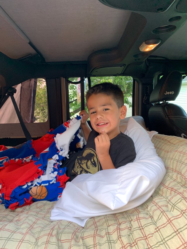 Who wouldn’t be happy sleeping in a Jeep?! Simple fun makes lasting memories.