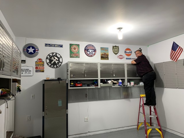 The mister has been working on redoing the garage. We had fun picking out signs to hang!